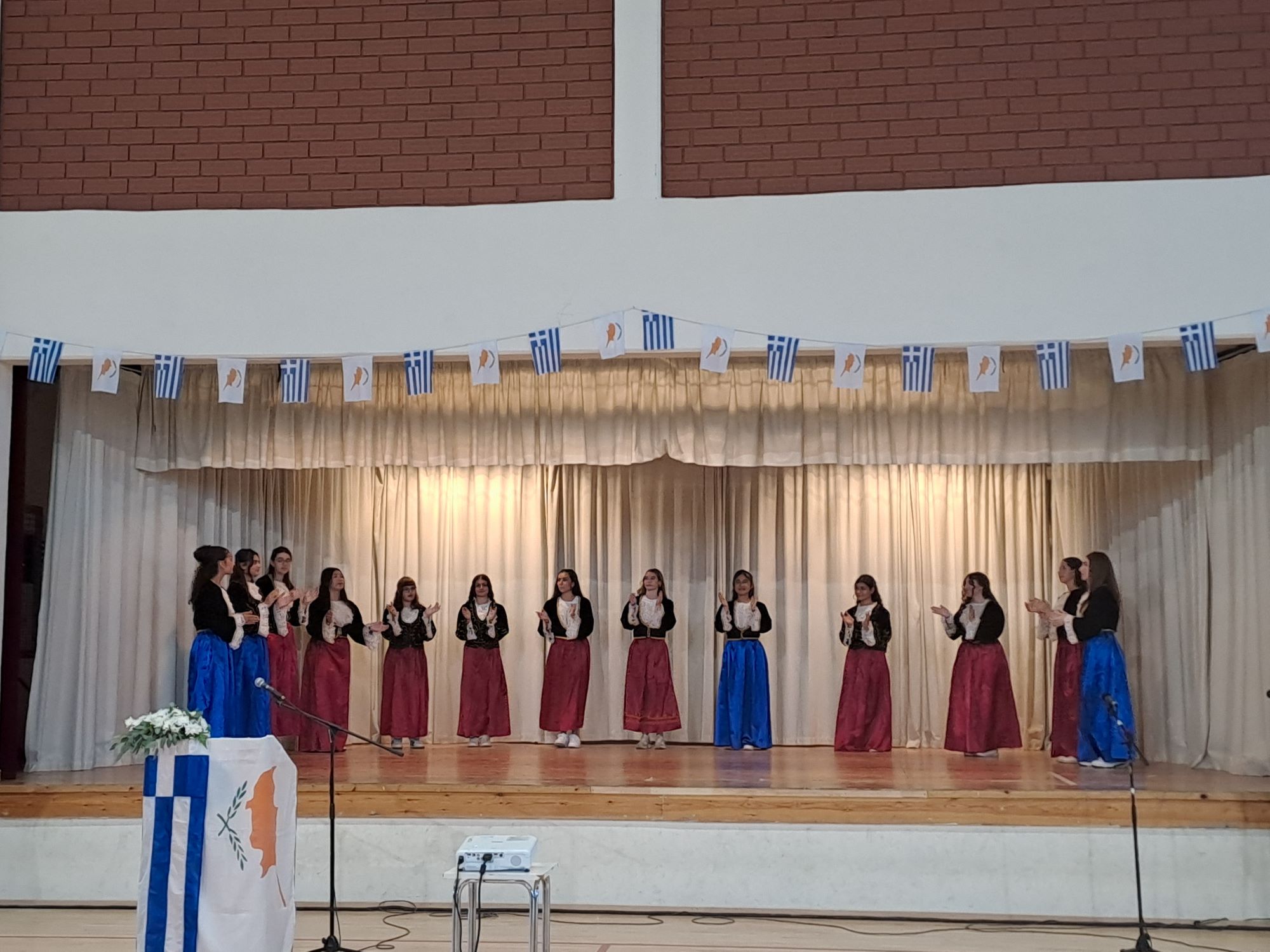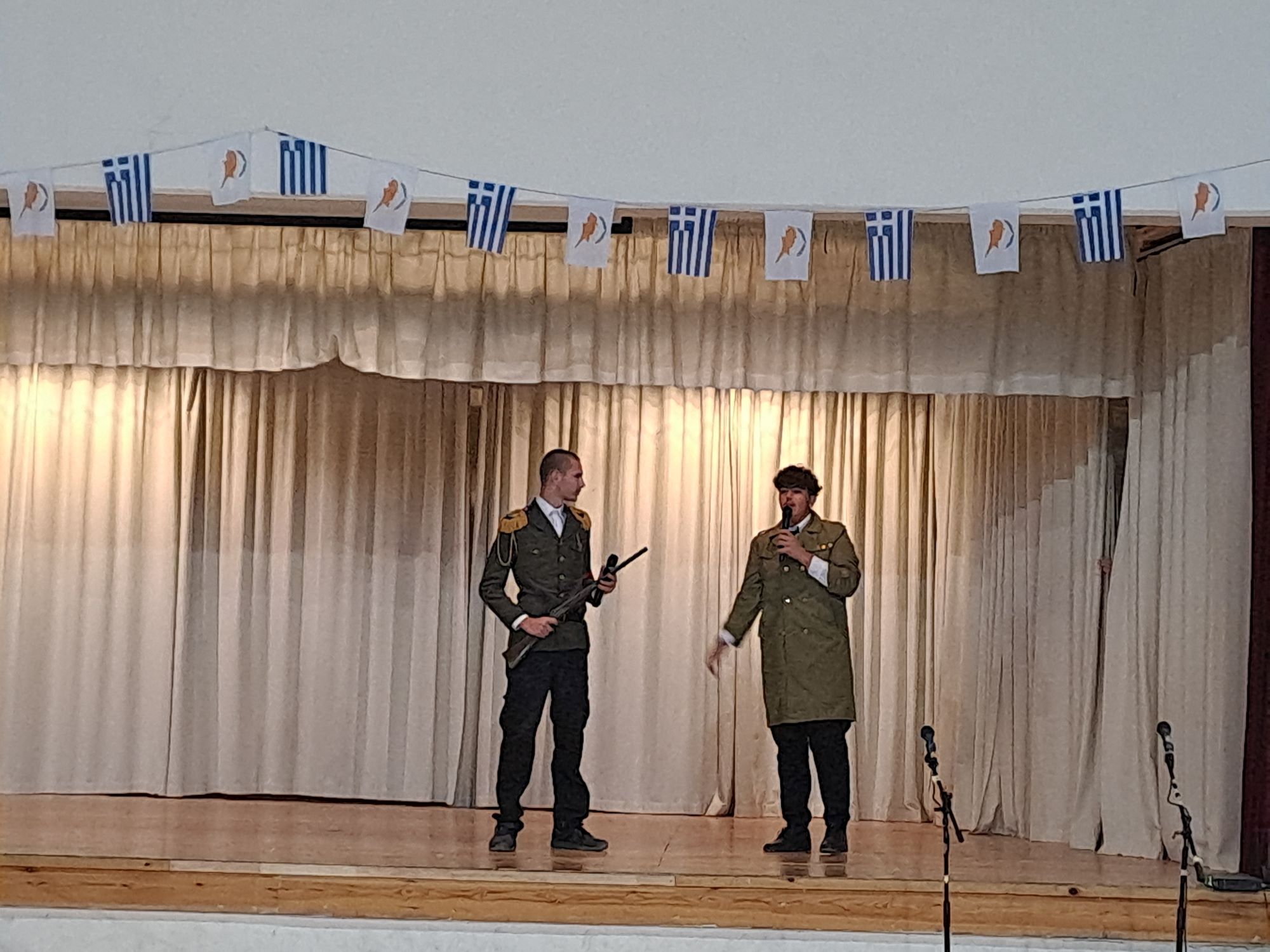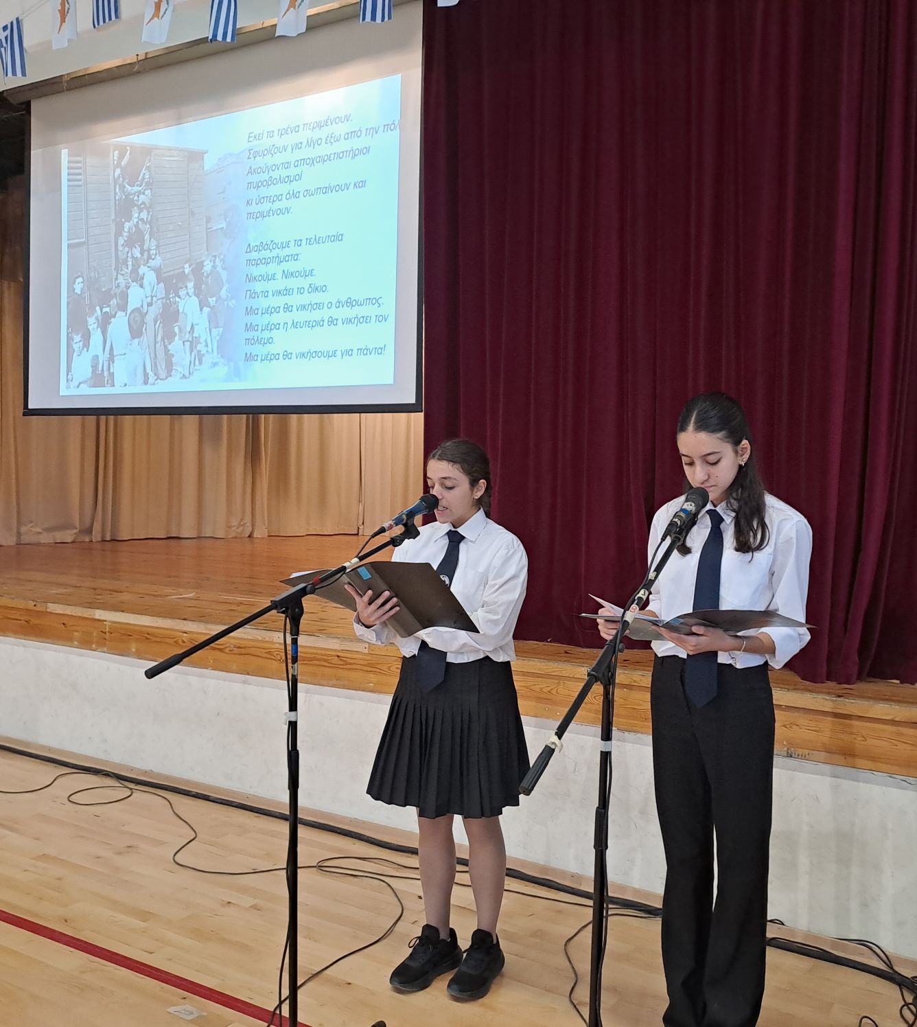 Έπειτα, μαθητές και μαθήτριες παρουσίασαν επετειακό αφιέρωμα στην Εποποιία του 1940 με αφηγήσεις, ποιήματα, θεατρικά δρώμενα, επετειακά τραγούδια και χορούς, τιμώντας έτσι τους ήρωες του 1940 και θυμίζοντάς μας το σθένος και την ενότητα του ελληνικού λαού εκείνης της εποχής. Η εκδήλωση έκλεισε με ορισμένα παιδιά ν’ αφήνουν μπαλόνια στον ουρανό, με τα δικά μας σύγχρονα «Όχι»: όχι στον φασισμό, όχι στην αδικία και στη βία, όχι στο μίσος και τον ρατσισμό. Μια πράξη συμβολική, που μας θυμίζει πως το πνεύμα του ’40 παραμένει ζωντανό μέσα μας, κάθε φορά που υπερασπιζόμαστε την ελευθερία, τη δημοκρατία και τον σεβασμό προς τον άνθρωπο.