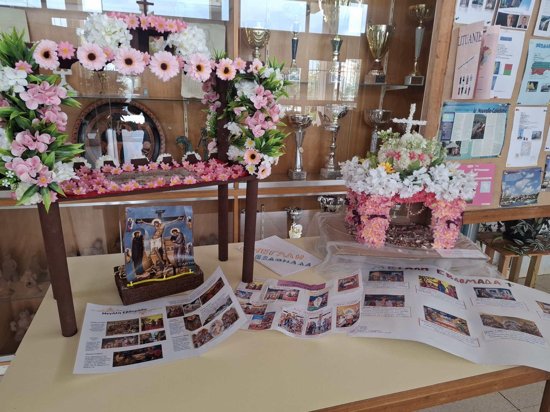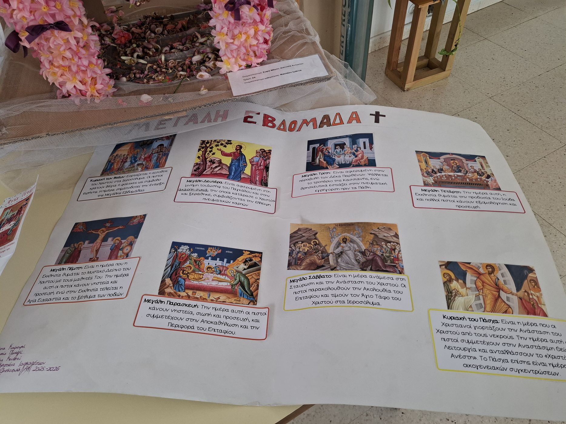 Εργασίες από μαθητές του σχολείου μας στο μάθημα των θρησκευτικών, με θέμα:"Οδοιπορικό στη Μεγάλη Εβδομάδα".Οι μαθητές είχαν να επιλέξουν ομαδική αφίσα ή χειροτεχνία με ανακυκλώσιμα υλικά.