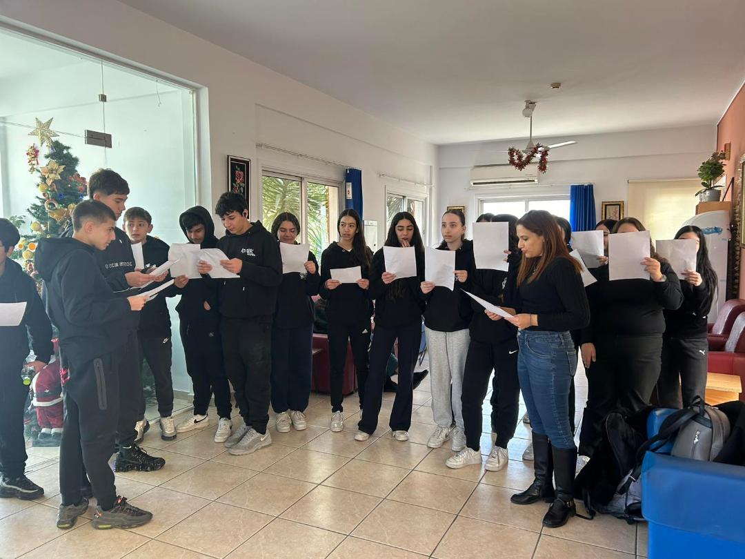 Στις 17 Δεκεμβρίου τα τμήματα Γ5 και Β6 επισκέφθηκαν με τους καθηγητές των Θρησκευτικών τους, κ. Κυριάκο Χατζηβασιλείου και κ. Ιωάννα Νικολάου, τις στέγες ηλικιωμένων, "Η Χρυσή Ηλικία"στο Γέρι και το "ΣΚΕ Γερίου" για να τραγουδήσουν τα Κάλαντα Χριστουγέννων και να προσφέρουν νότες χαράς στους ηλικιωμένους και στο προσωπικό μέσα σε μια γιορτινή ατμόσφαιρα.